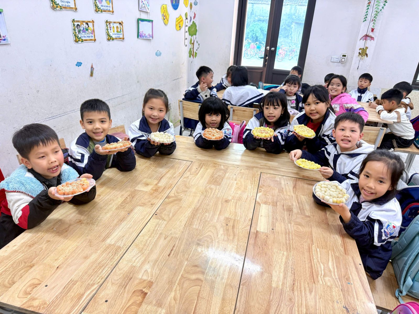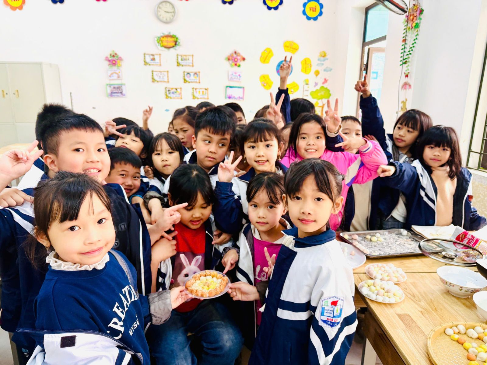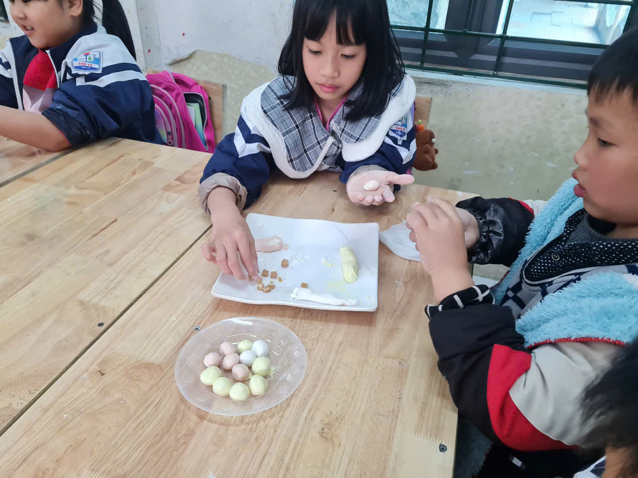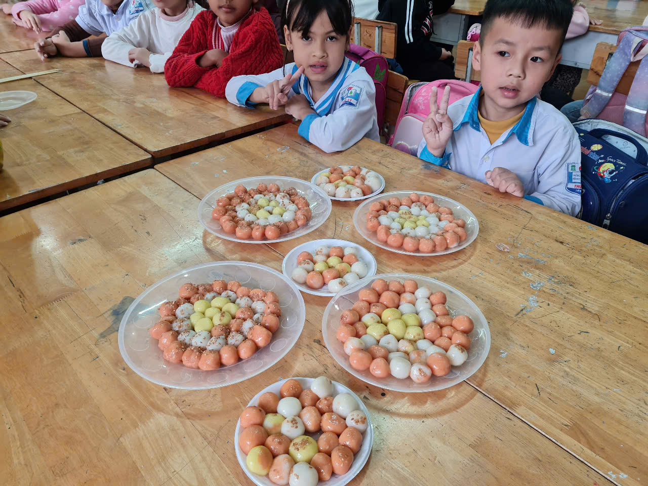 👩🏫 Từ những viên bột dẻo trắng, các em đã tỉ mỉ nặn từng chiếc bánh, cho nhân đường vào bên trong và cẩn thận viên tròn. Sau đó, bánh được luộc chín, nổi lên trên mặt nước và xếp ra đĩa, rắc thêm một chút vừng thơm. Thành quả là những đĩa bánh trôi xinh xắn, mang đậm hương vị truyền thống do chính tay các em tạo ra.