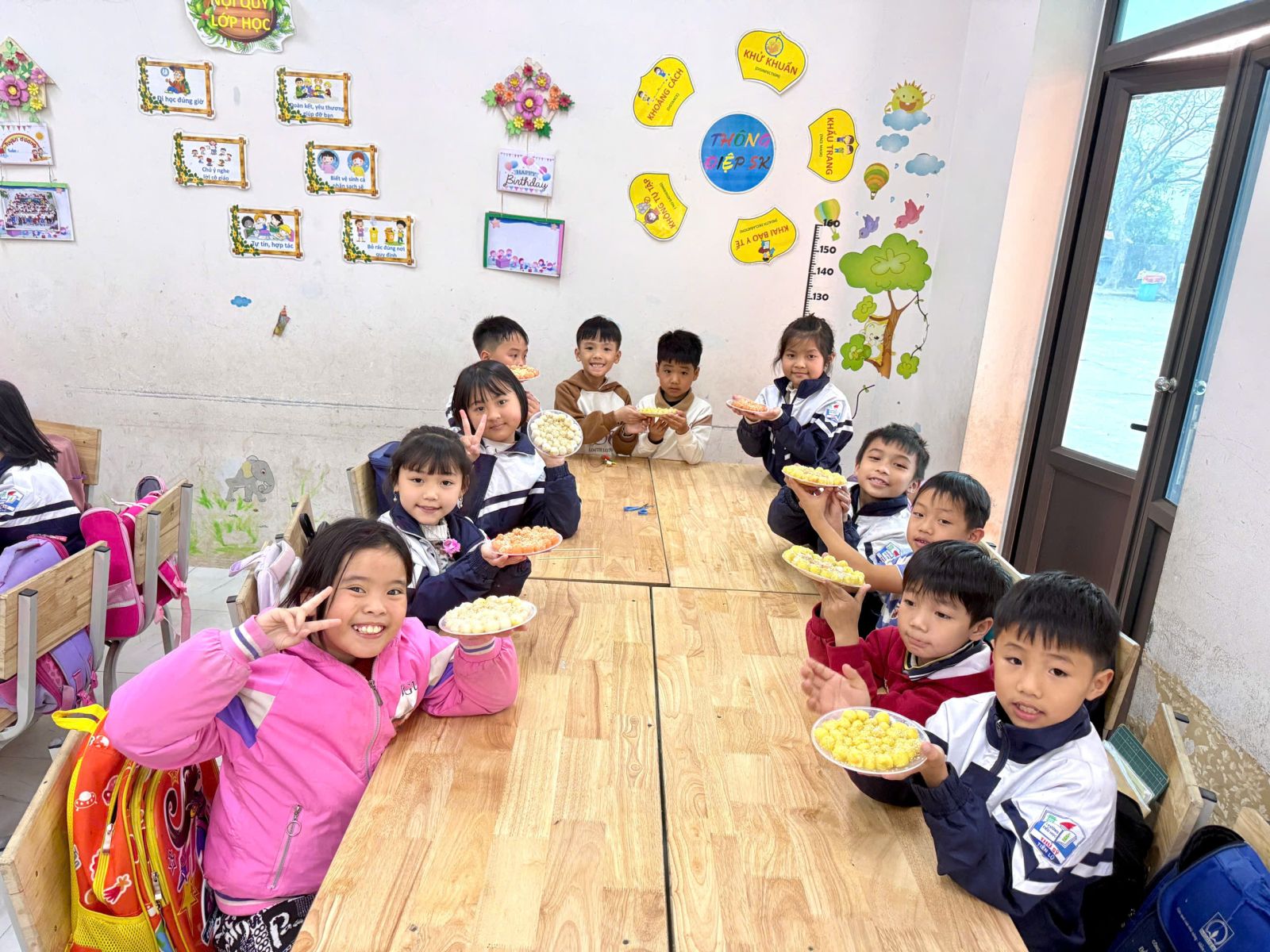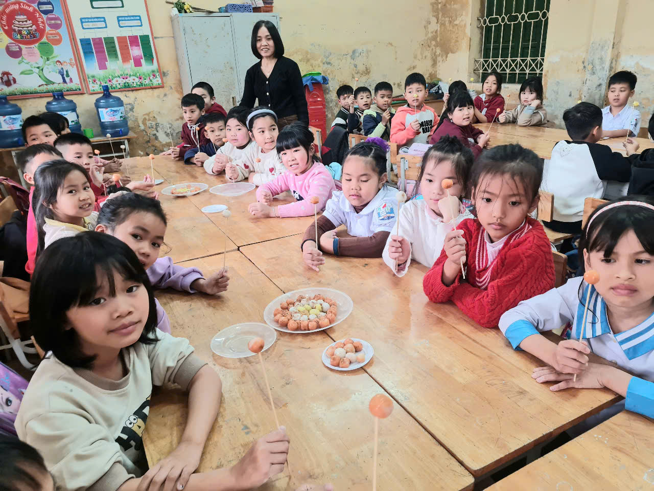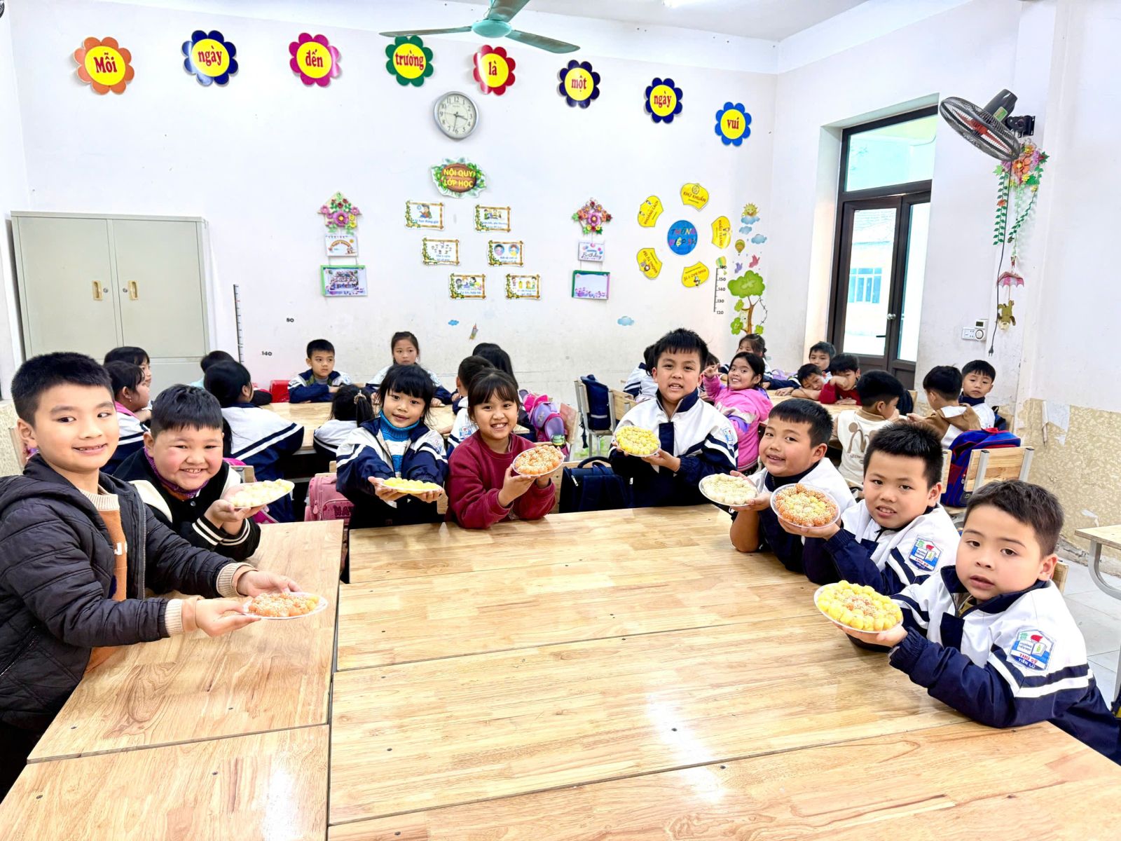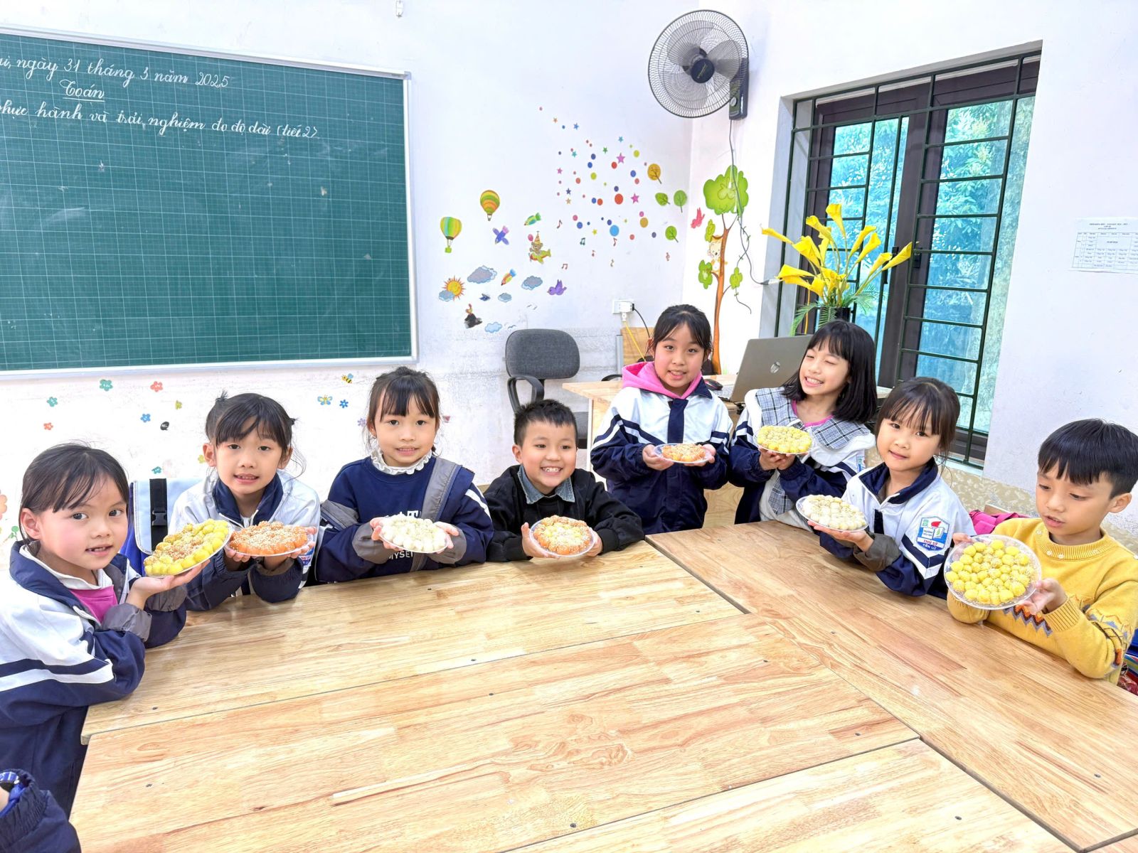 👩🏫 Từ những viên bột dẻo trắng, các em đã tỉ mỉ nặn từng chiếc bánh, cho nhân đường vào bên trong và cẩn thận viên tròn. Sau đó, bánh được luộc chín, nổi lên trên mặt nước và xếp ra đĩa, rắc thêm một chút vừng thơm. Thành quả là những đĩa bánh trôi xinh xắn, mang đậm hương vị truyền thống do chính tay các em tạo ra.